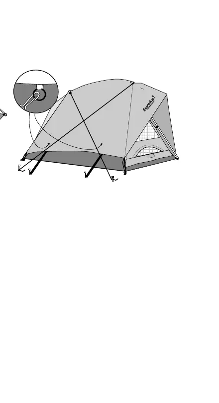 • Repeat with the second pole and at the back of the tent with the last two