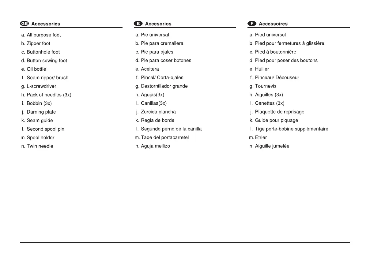 *Los accesorios opcionales no se incluyen con esta máquina sin embargo están disponibles llamando a nuestro servicio de cliente en 1-800-361-4639.