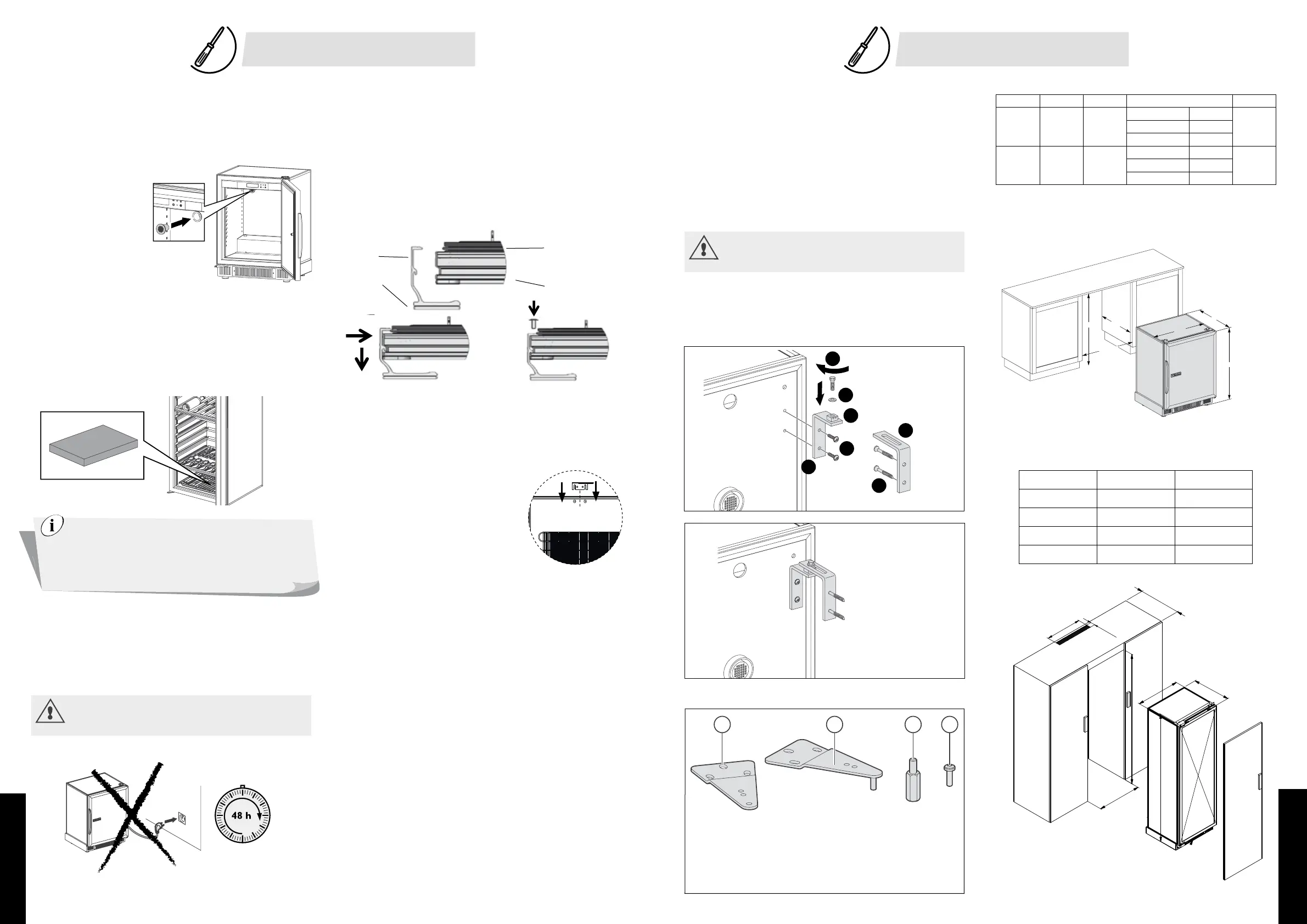 • 将酒柜稍微向后倾斜,调