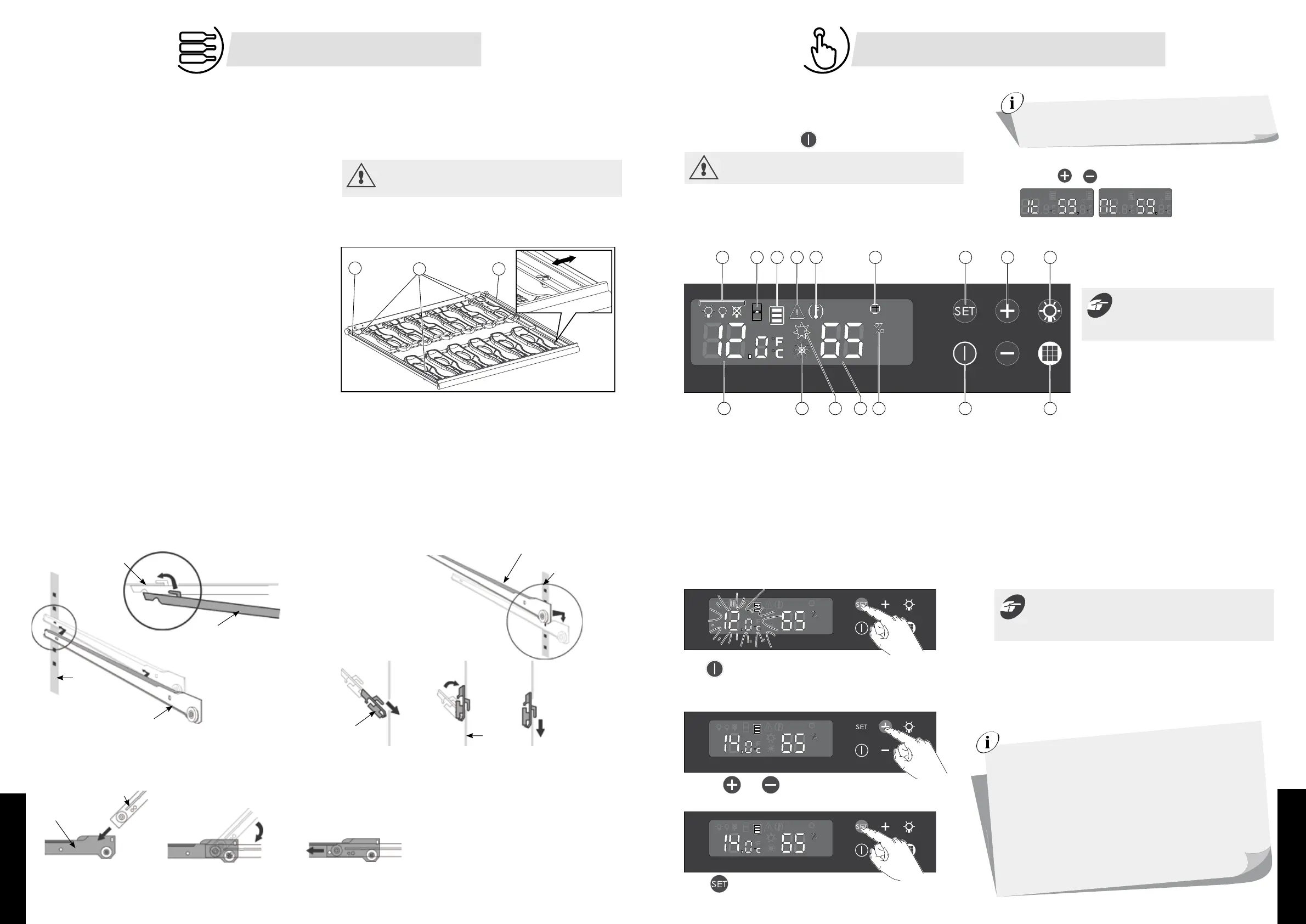 • 请将酒瓶尽量平均地搁置在酒柜的各个搁板上,以使重量分布在更
