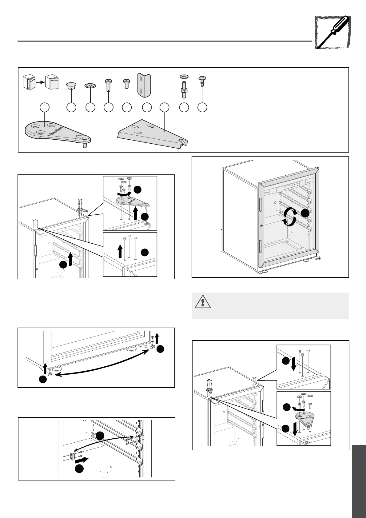 12 Enrosque la bisagra de tal manera que la puerta esté paralela a la caja.