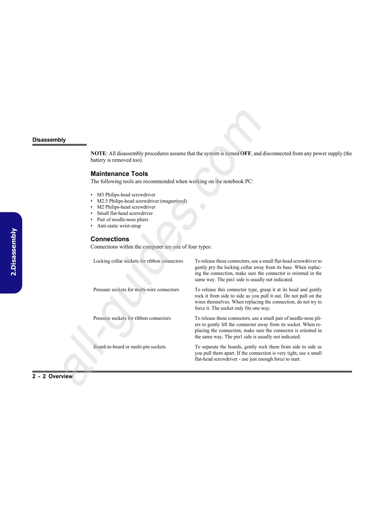 NOTE: All disassembly procedures assume that the system is turned OFF, and disconnected from any power supply (the