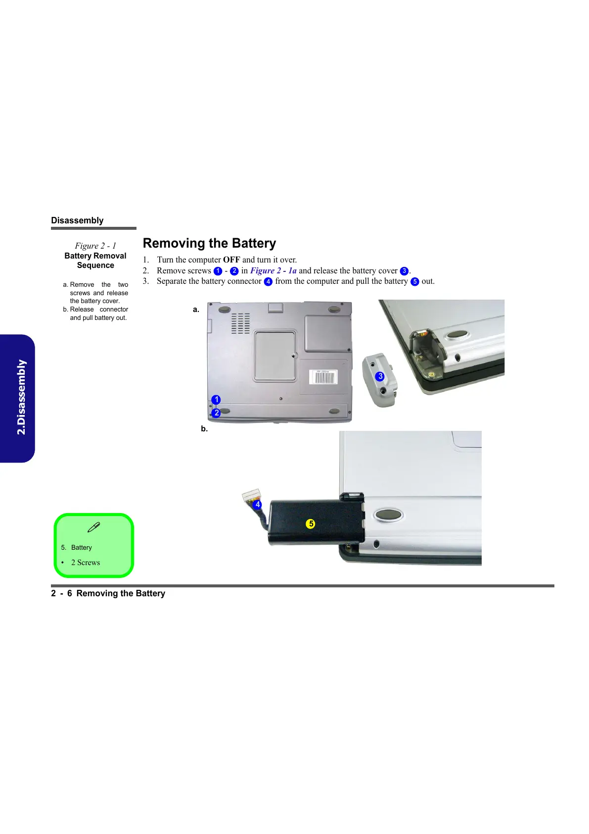 2. Remove screws - in Figure 2 - 1a and release the battery cover .