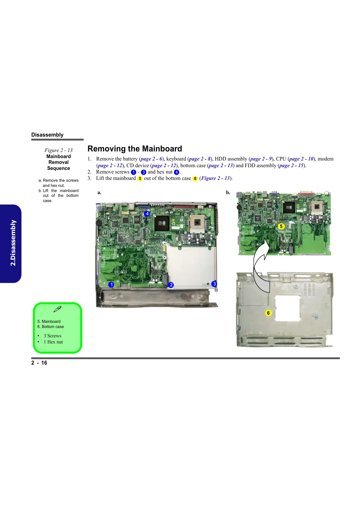 3. Lift the mainboard out of the bottom case (Figure 2 - 13).