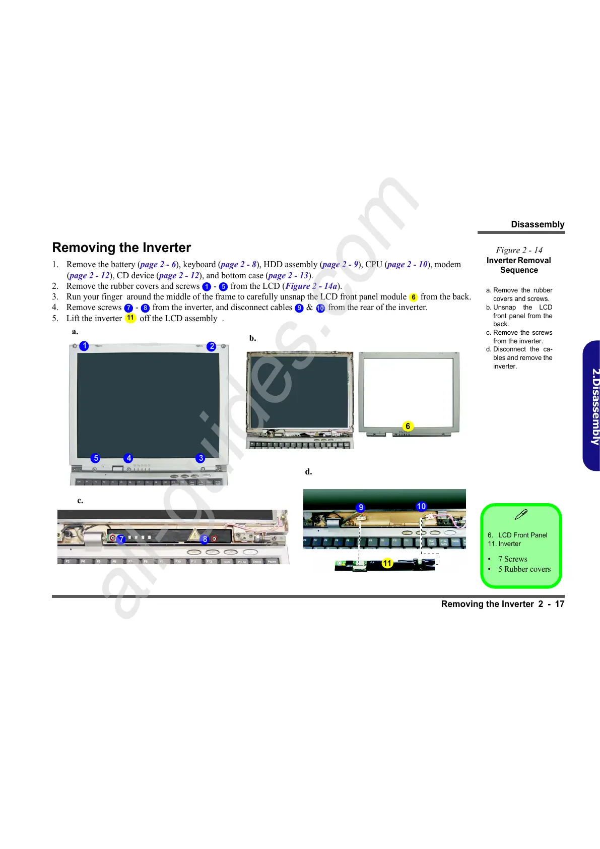 2. Remove the rubber covers and screws - from the LCD (Figure 2 - 14a).