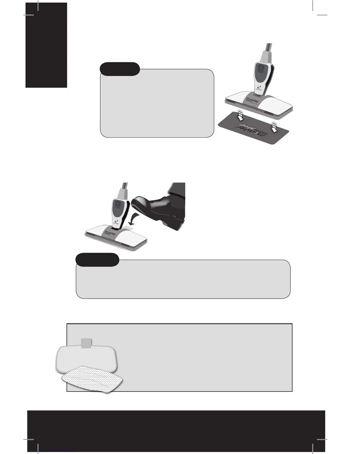 a dry, clean pad to the Monster Mop Base. To prevent oor damage,