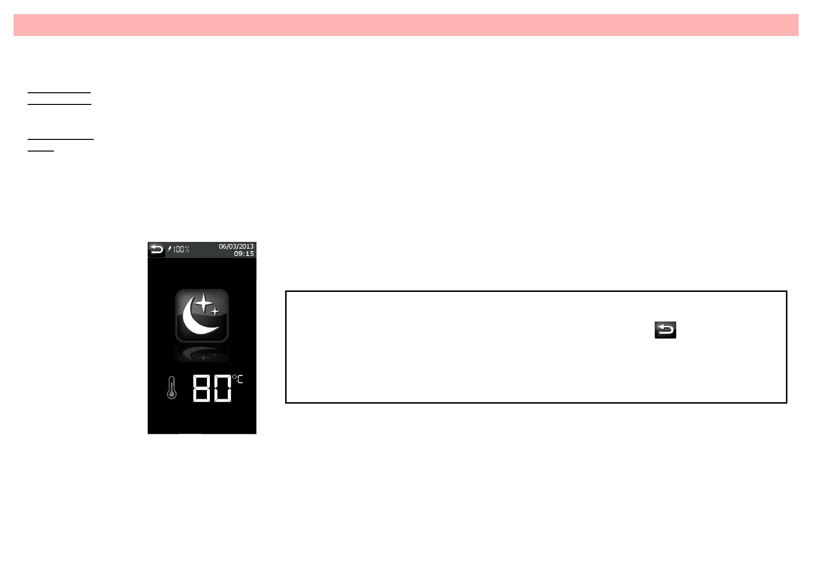 For example, if the time is adjusted to 1h30 and the temperature to 80°C, the control board will switch automatically in «Energy saving» mode if the TIMER IS UNUSED for 1h30,