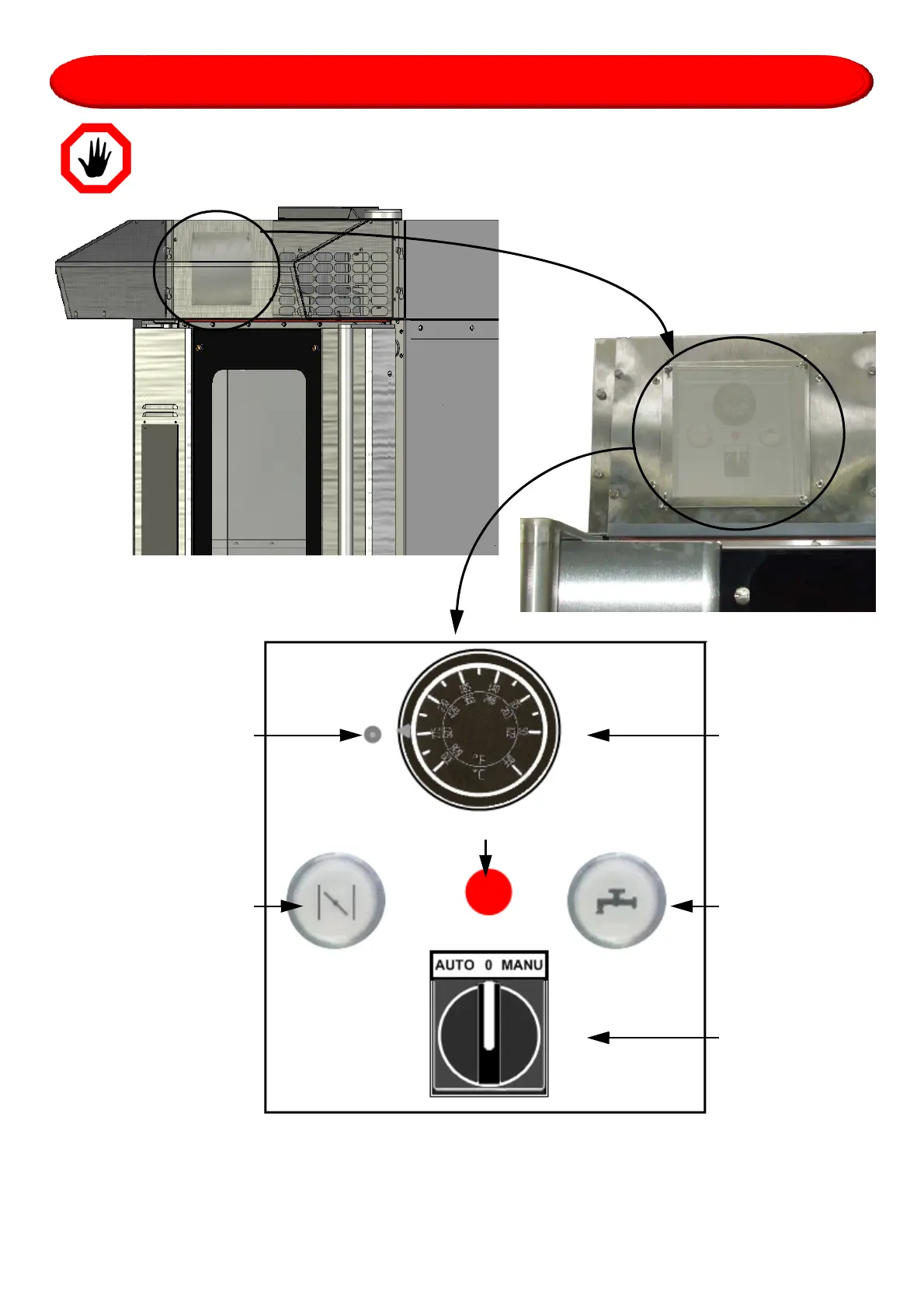 The stopgap control panel is located at the front of the electric box.
