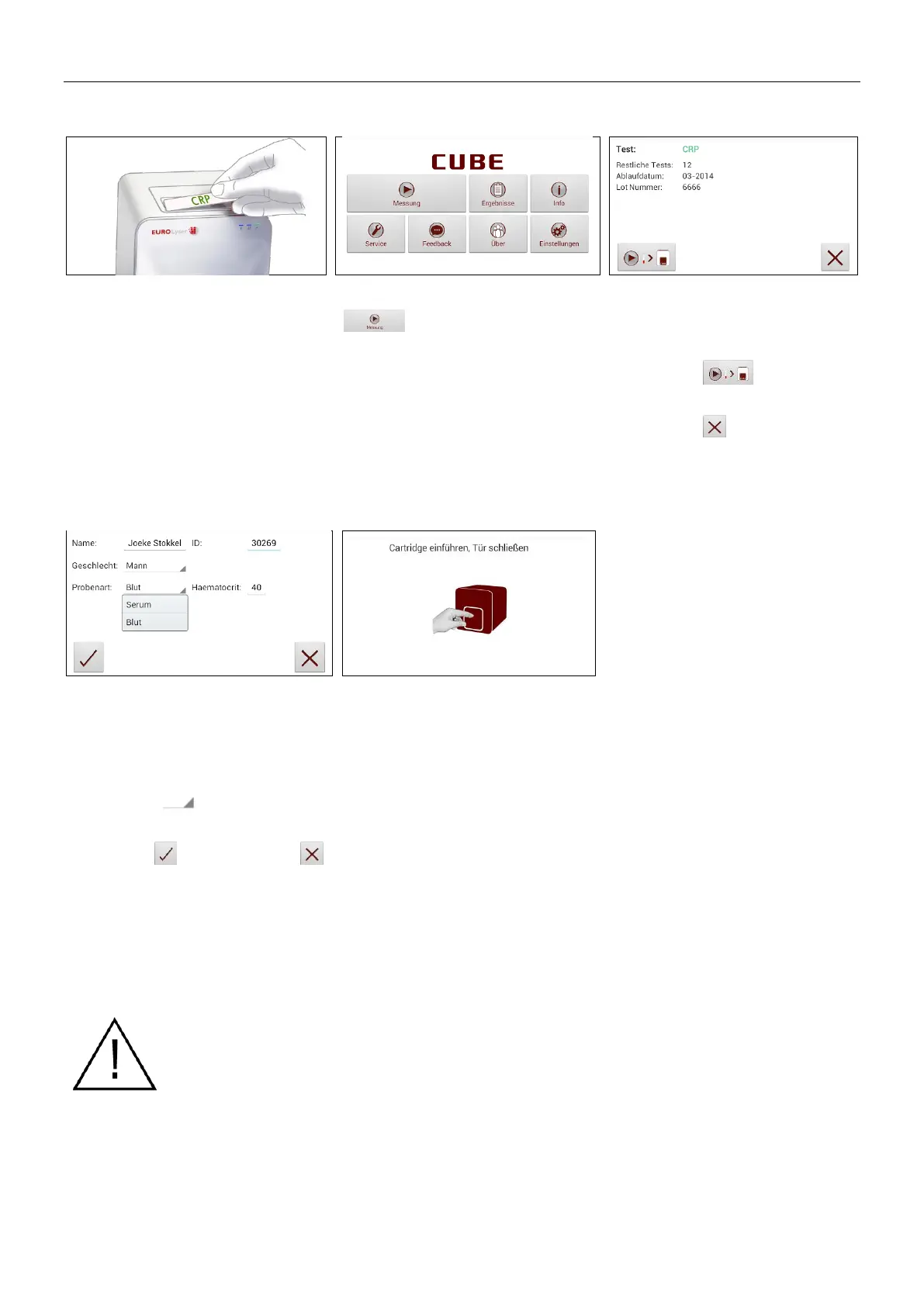 Achten Sie auf die korrekte Handhabung der Testcartridge gemäß dem