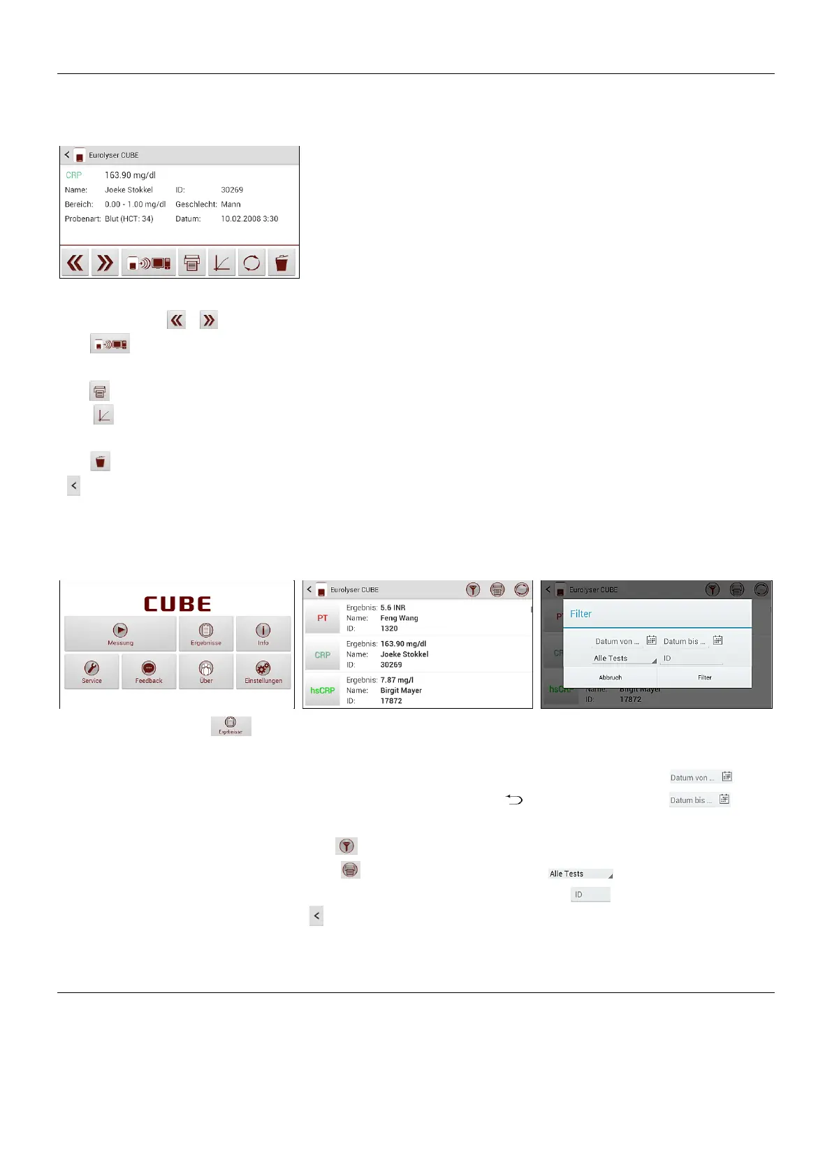 Die Ergebnisse werden zudem im Speicher des Tablet PCs abgelegt. Sie werden wie folgt abgerufen: