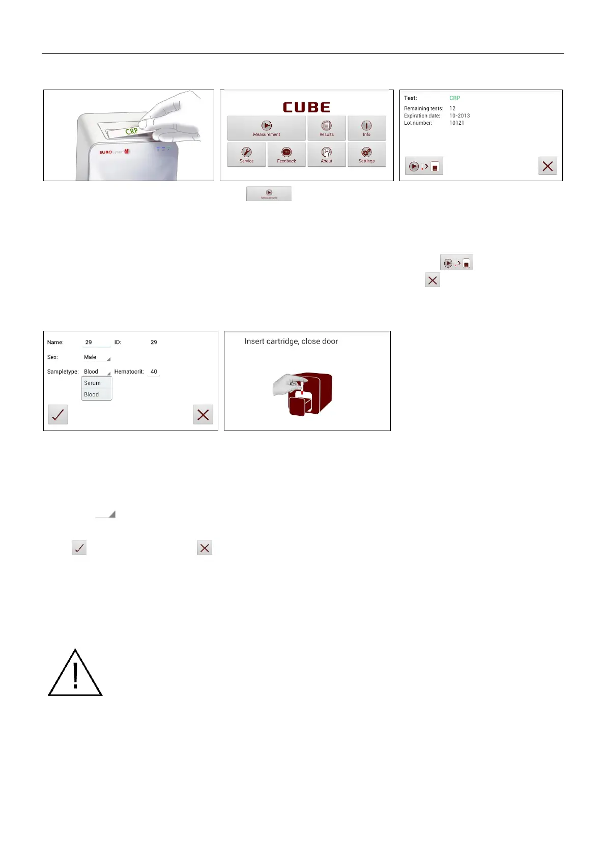 Use only test cartridges approved by the manufacturer. Otherwise severe