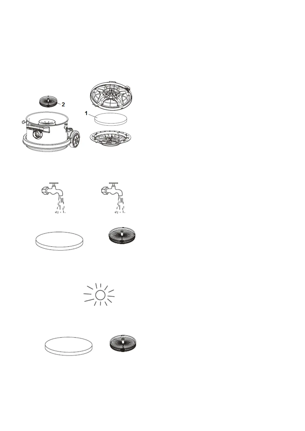 - Take the HEPA-filter (2) uit of the machine