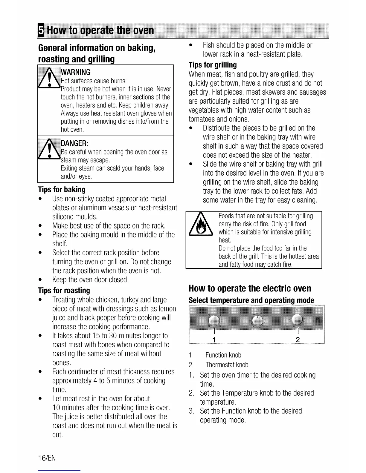 Euromaid BS7 - Oven Operation; Baking, Roasting, and Grilling Guide; Operating the Electric Oven