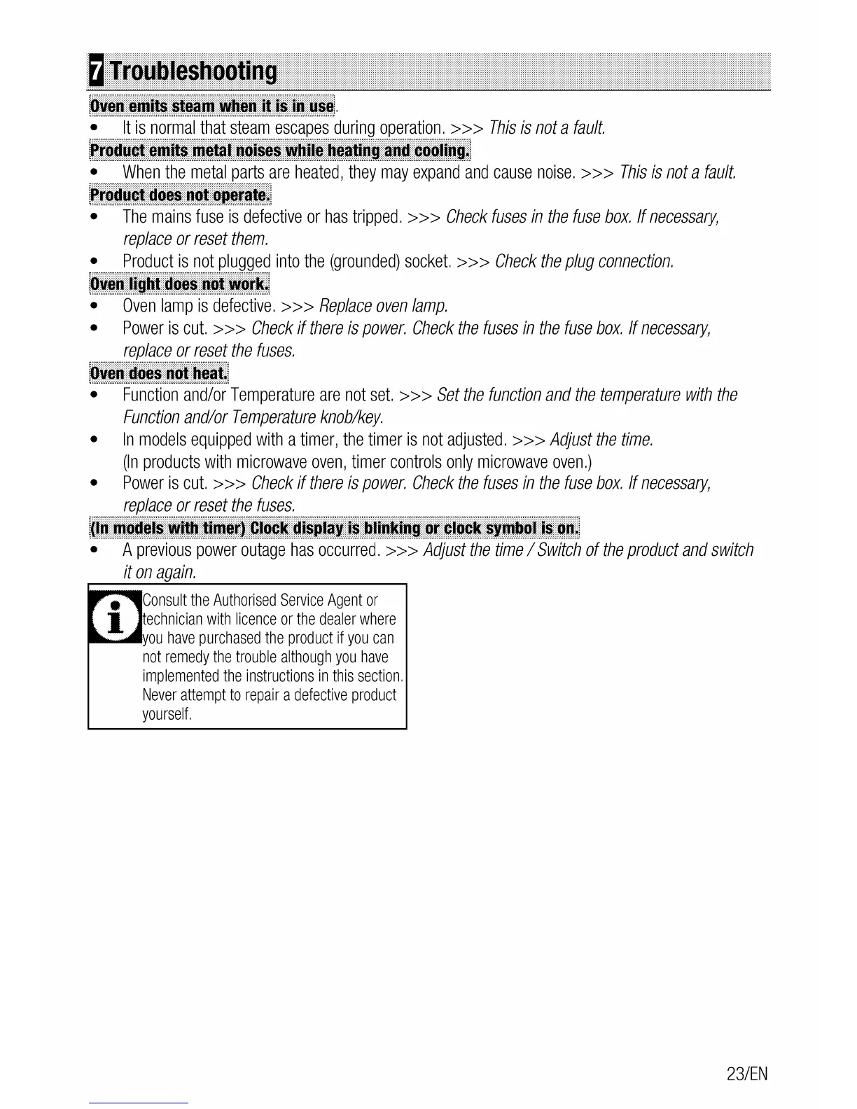 Euromaid BS7 - Troubleshooting; Common Oven Issues and Solutions