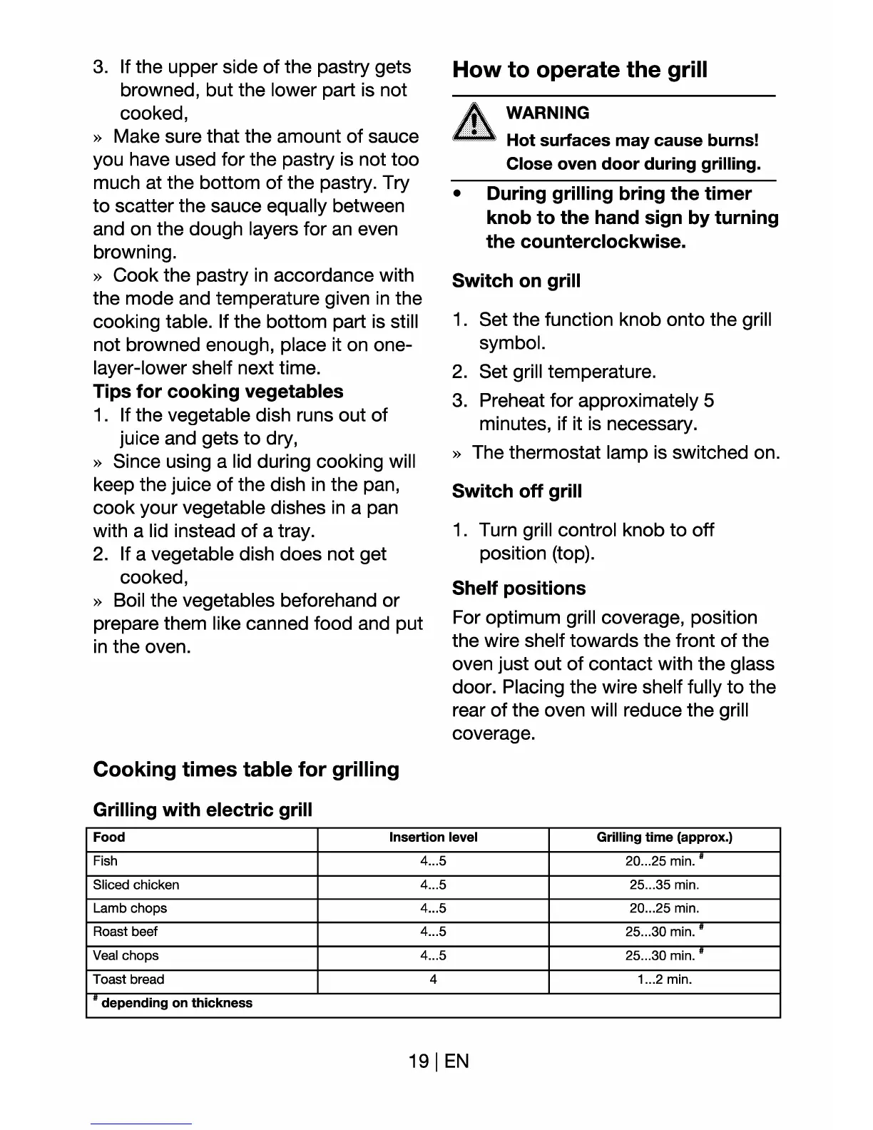 Euromaid BS8 - Cooking Times Table for Grilling; How to Operate the Grill