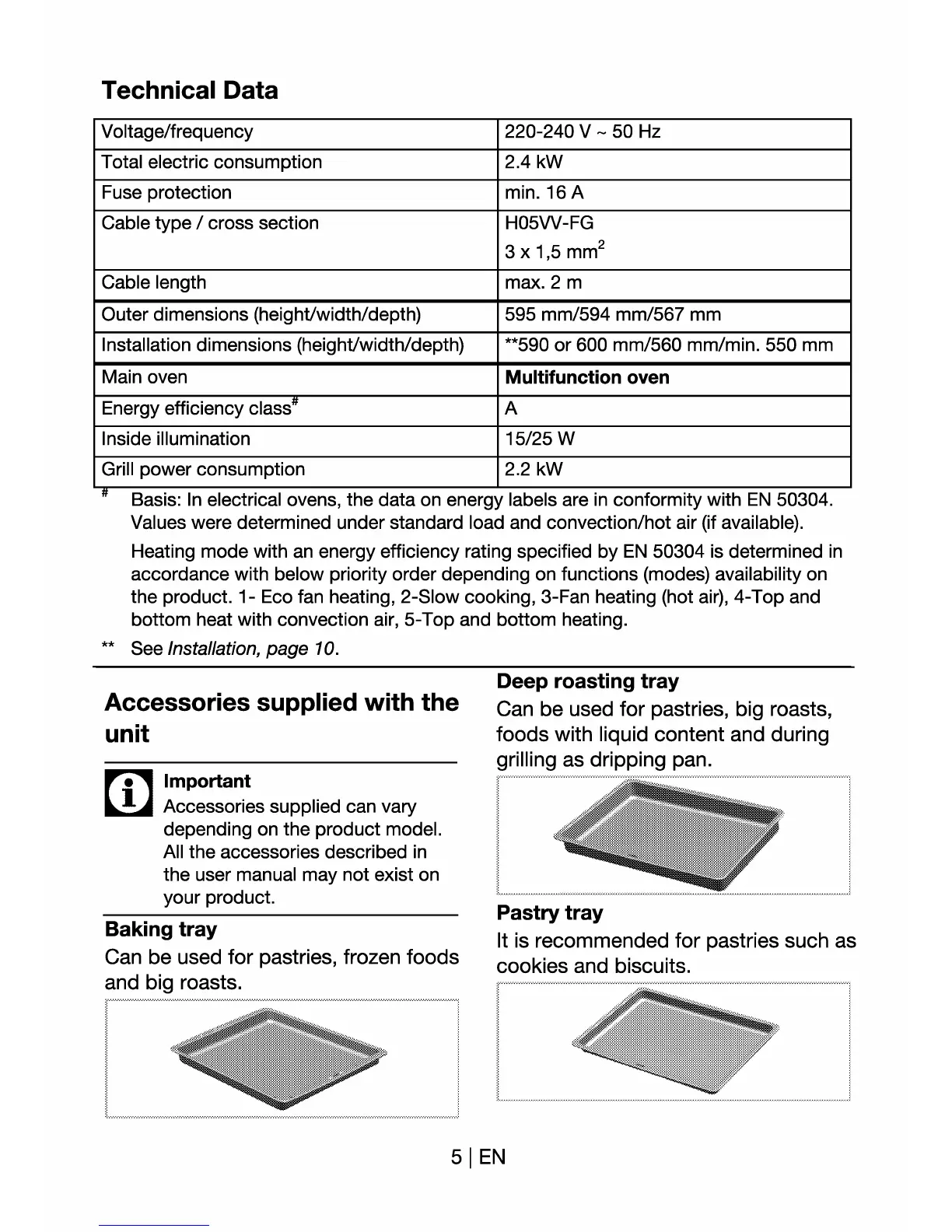 Euromaid BS8 - Technical Data; Accessories Supplied with the Unit