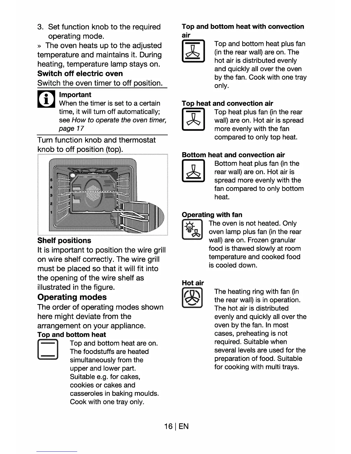 Euromaid BS8 - Shelf Positions; Operating Modes