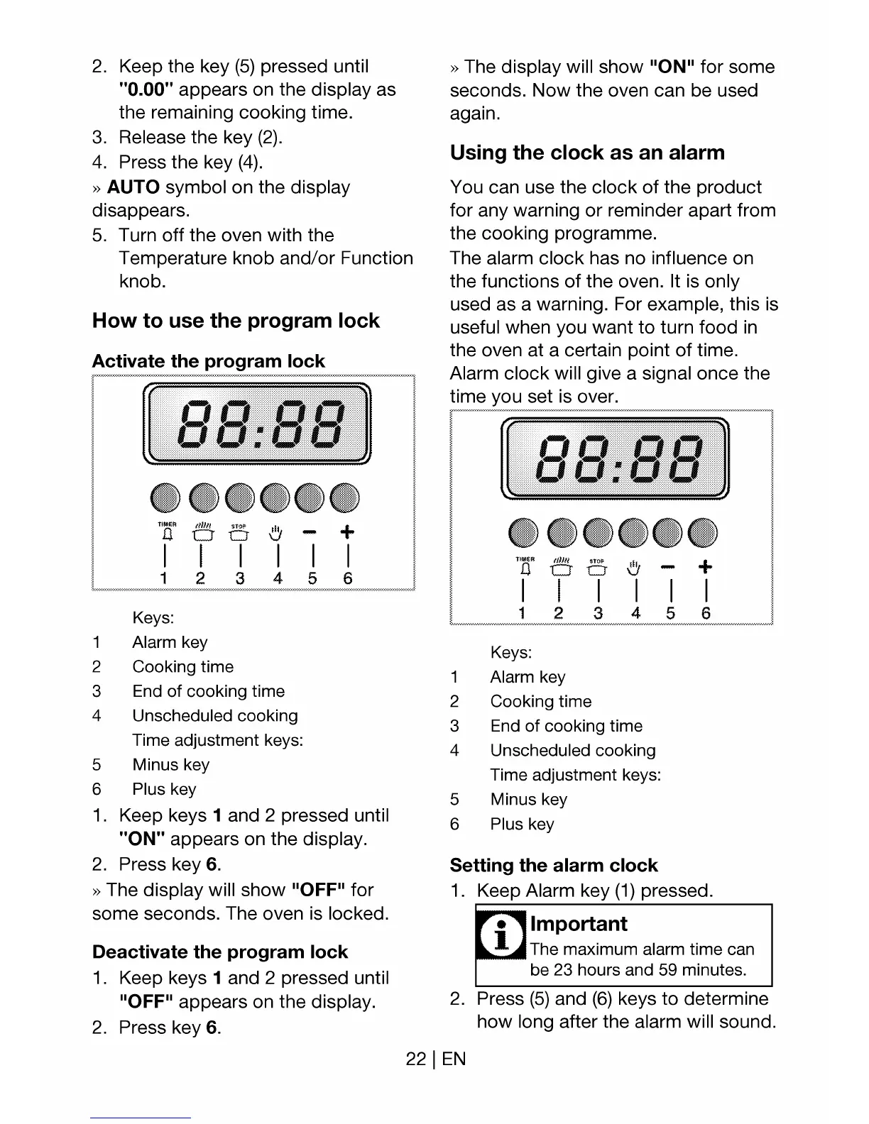 Euromaid CDDS60 - How to Use the Program Lock; Using the Clock as an Alarm