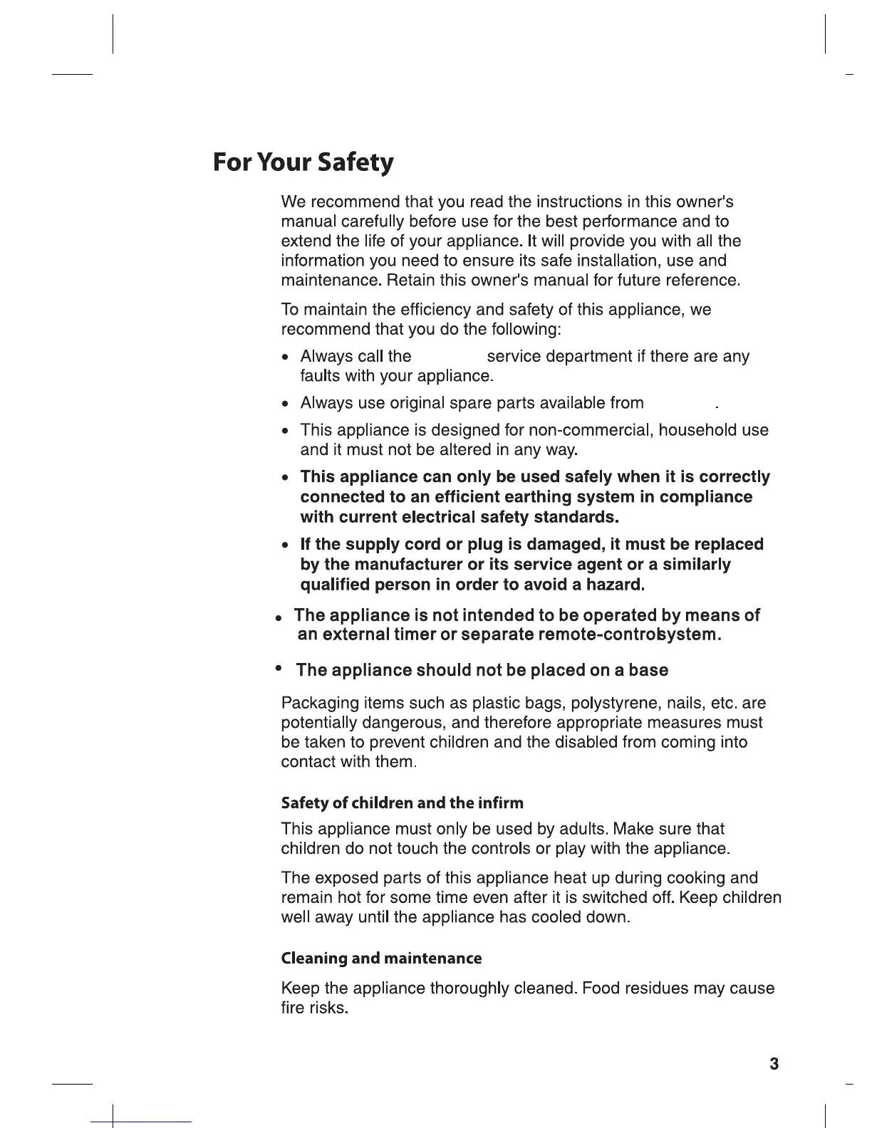 Euromaid CS9TS - For Your Safety; Safety of children and the infirm