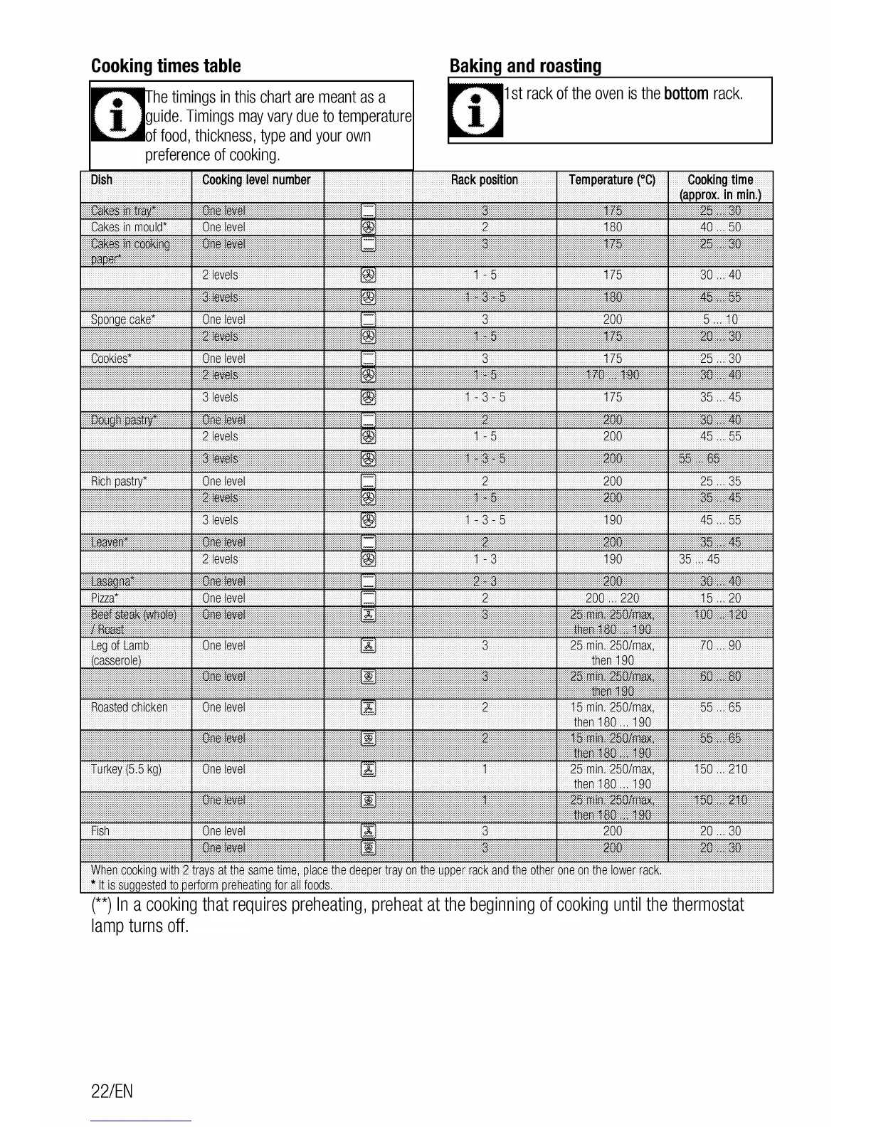 Euromaid DS 2 - Cooking Times Table; Baking and Roasting