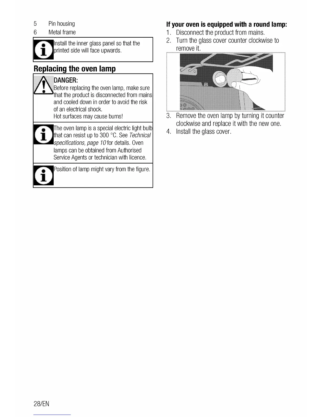 Euromaid DS 2 - Replacing the Oven Lamp; If Your Oven Is Equipped with a Round Lamp