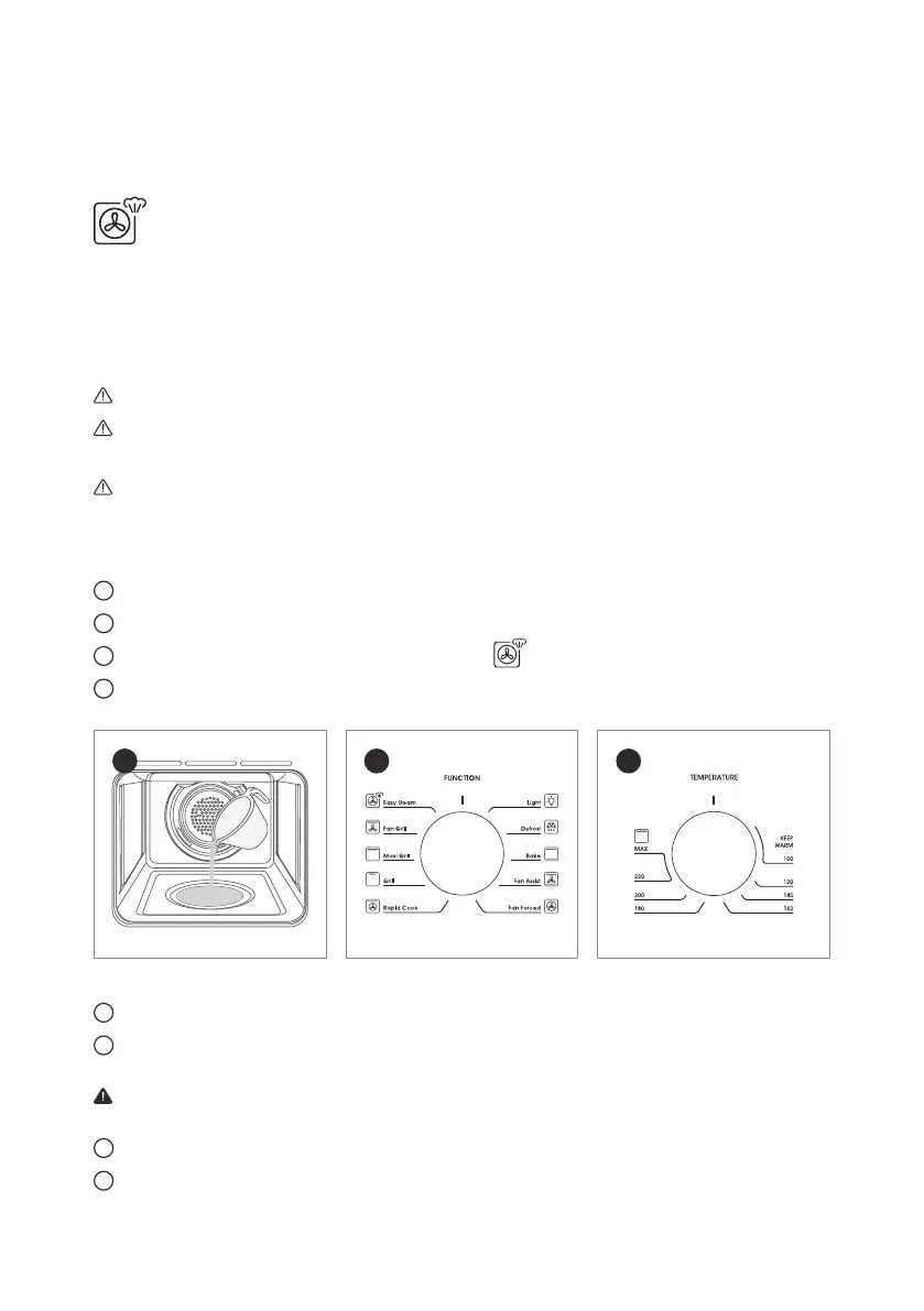 Warning! Open the oven door carefully once the steam function has completed.
