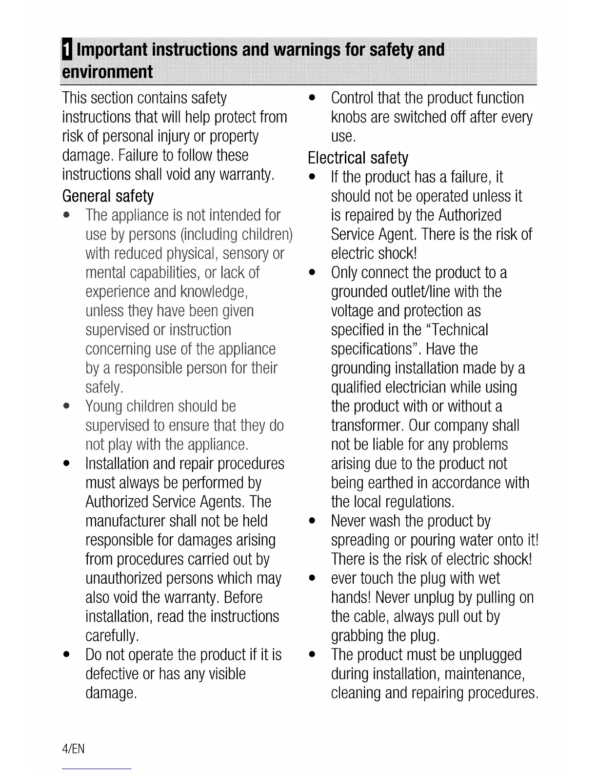 Euromaid ES7 - Important instructions and warnings for safety and environment; General Safety Guidelines