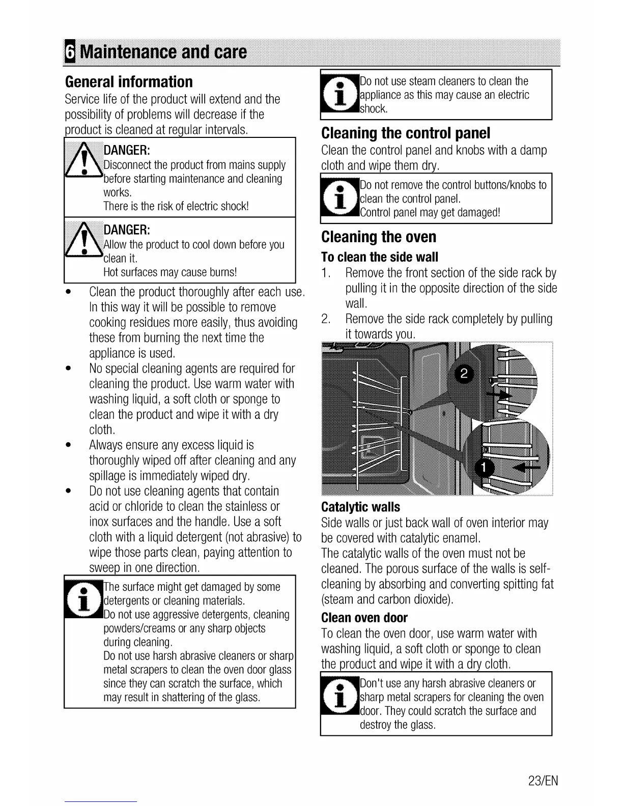 Euromaid EW7 - Maintenance and Care; General Information; Cleaning the Control Panel; Cleaning the Oven