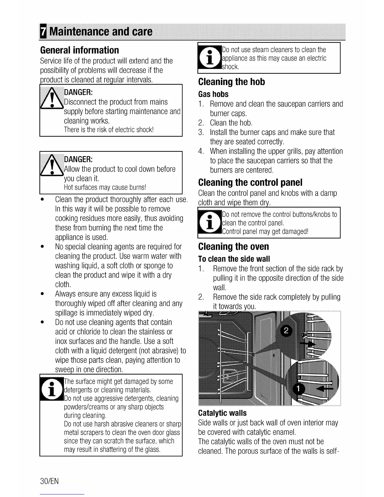 Euromaid GDDS60 - Maintenance and Care; Hob and Control Panel Cleaning; Oven Interior Cleaning