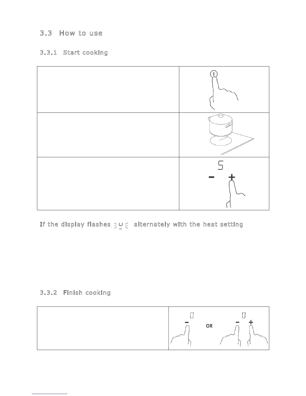 The display will automatically turn off after 1 minute if no suitable pan is placed on it.