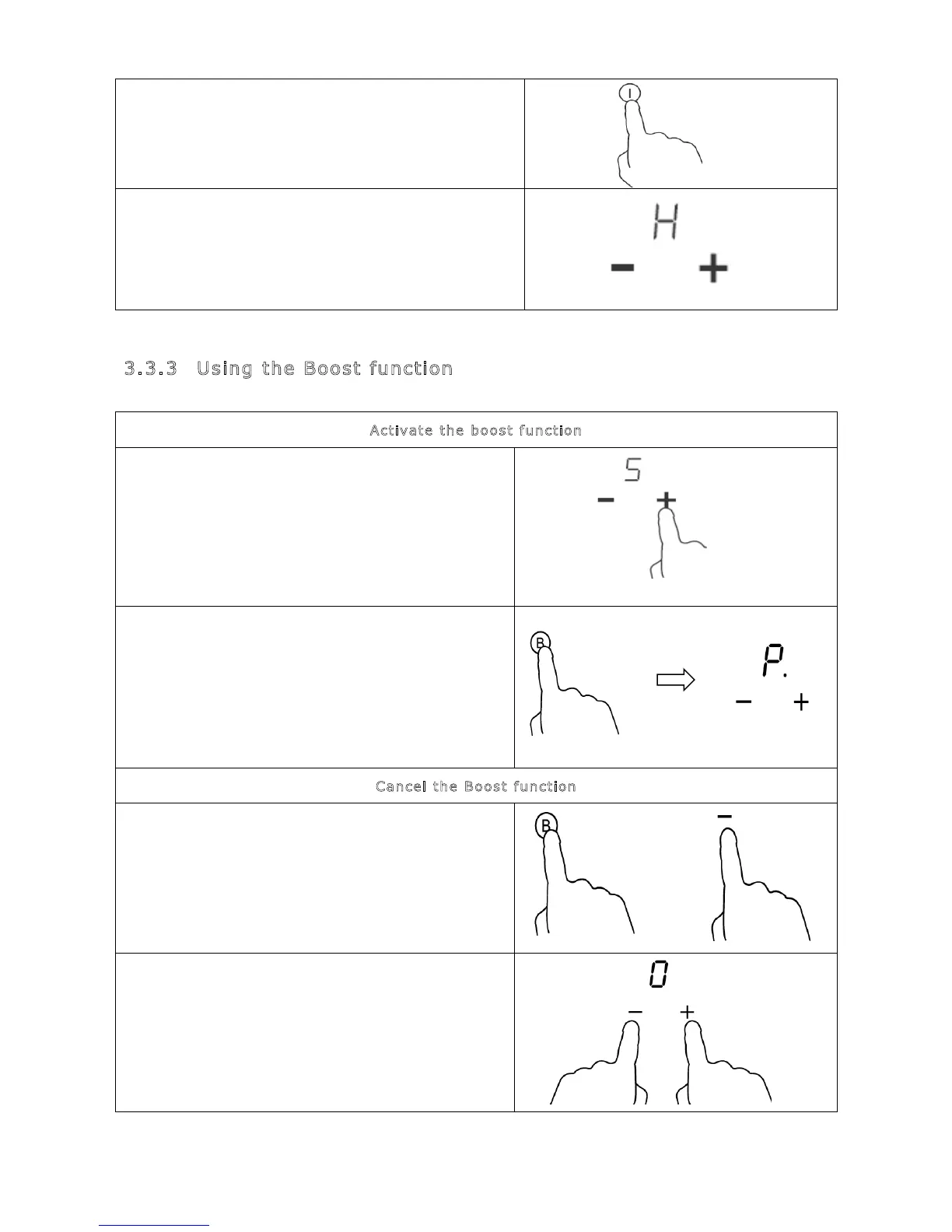 Touching “-” and “+” control together. The cooking zone