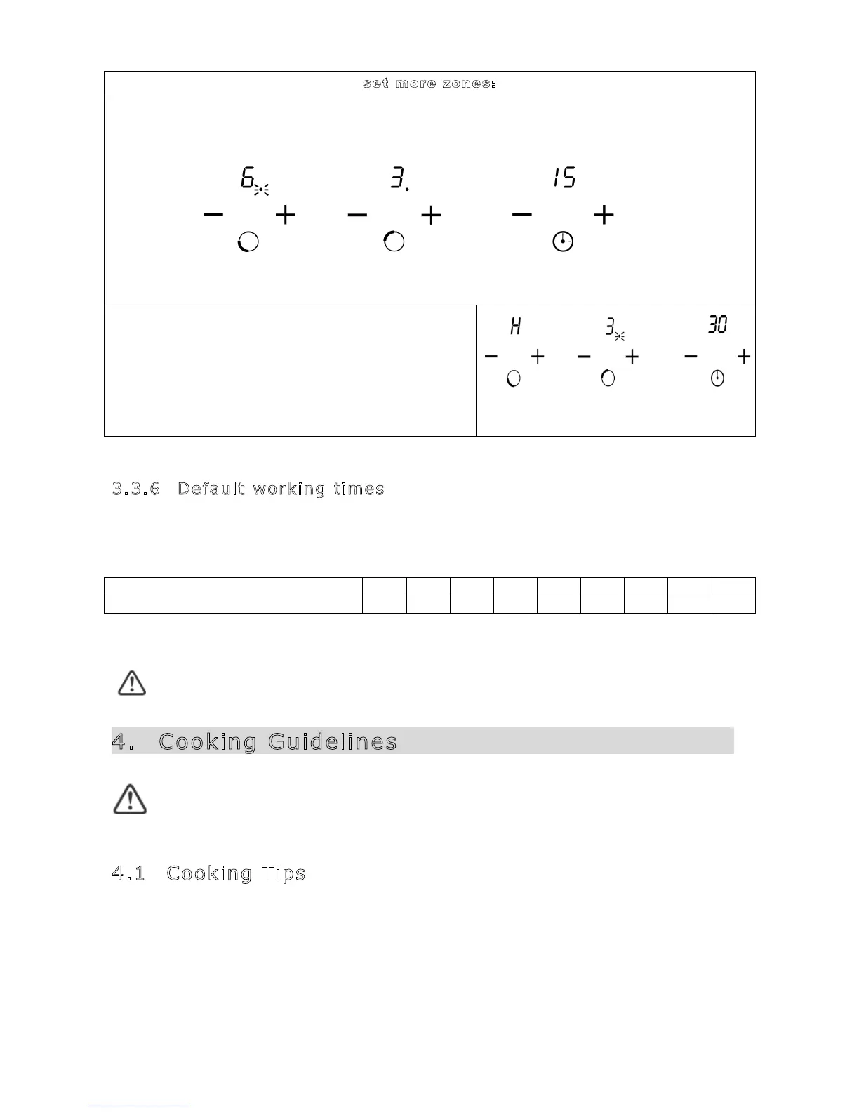 When you set the time for several cooking zones simultaneously, decimal dots of the relevant cooking