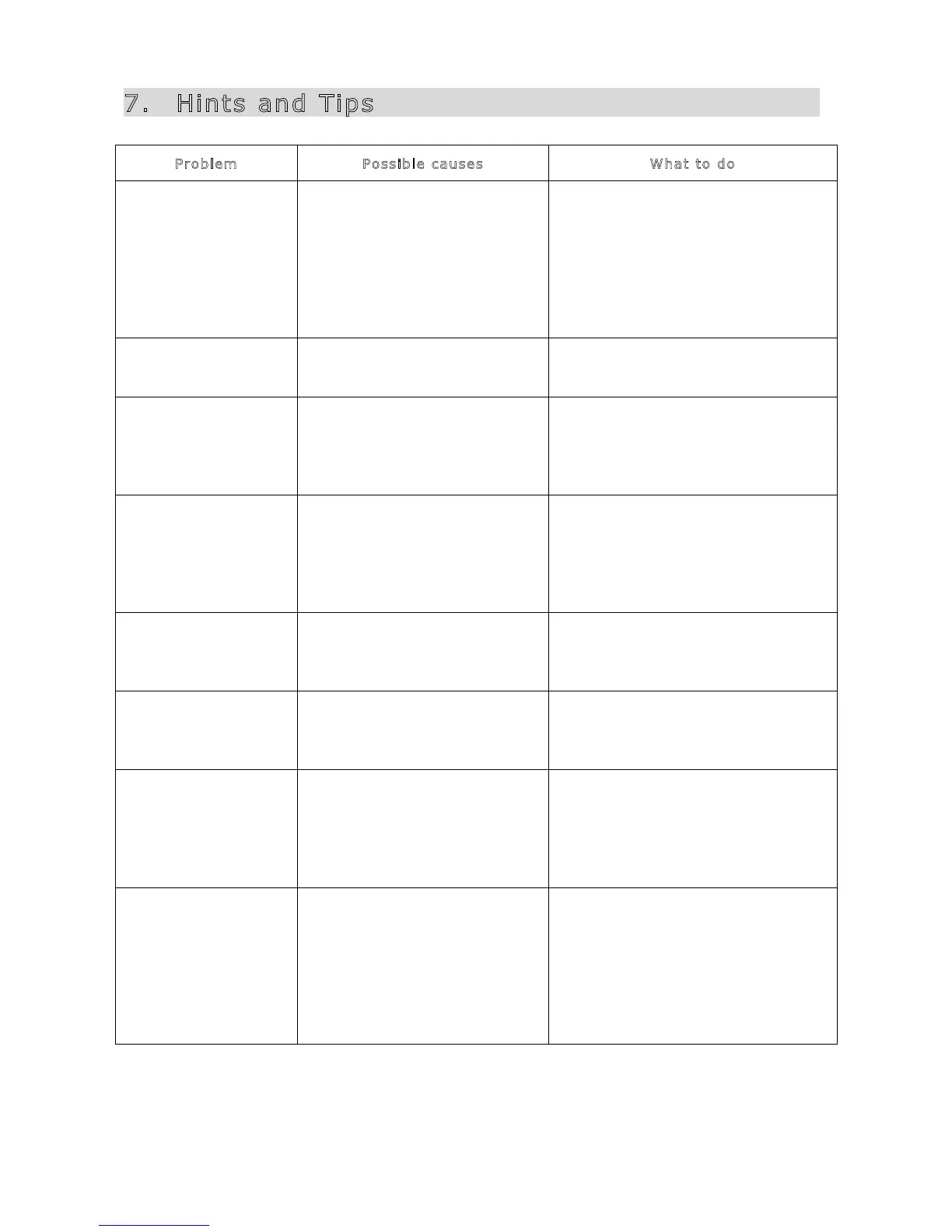 Problem Possible causes What to do