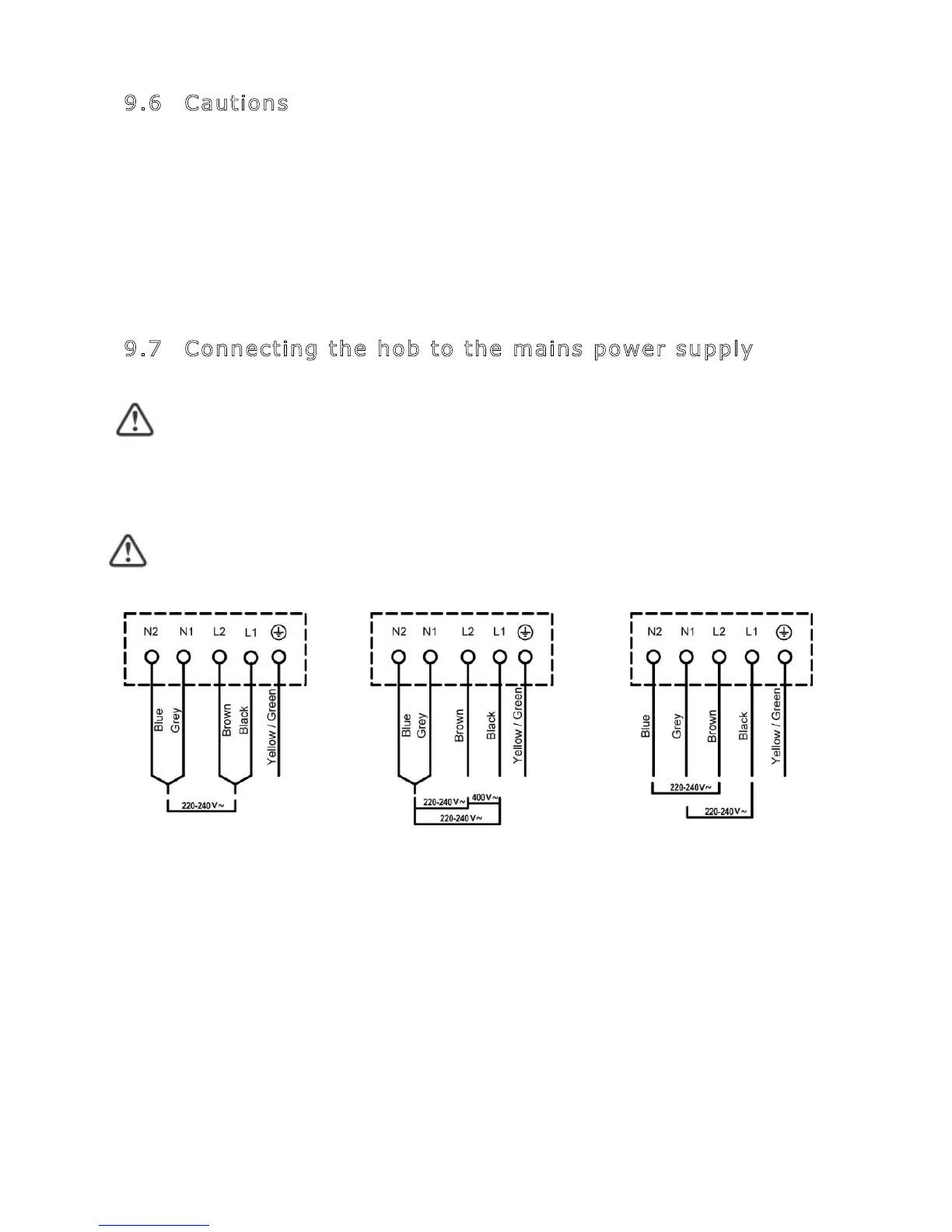 9.7 Connecting the hob to the mains power supply