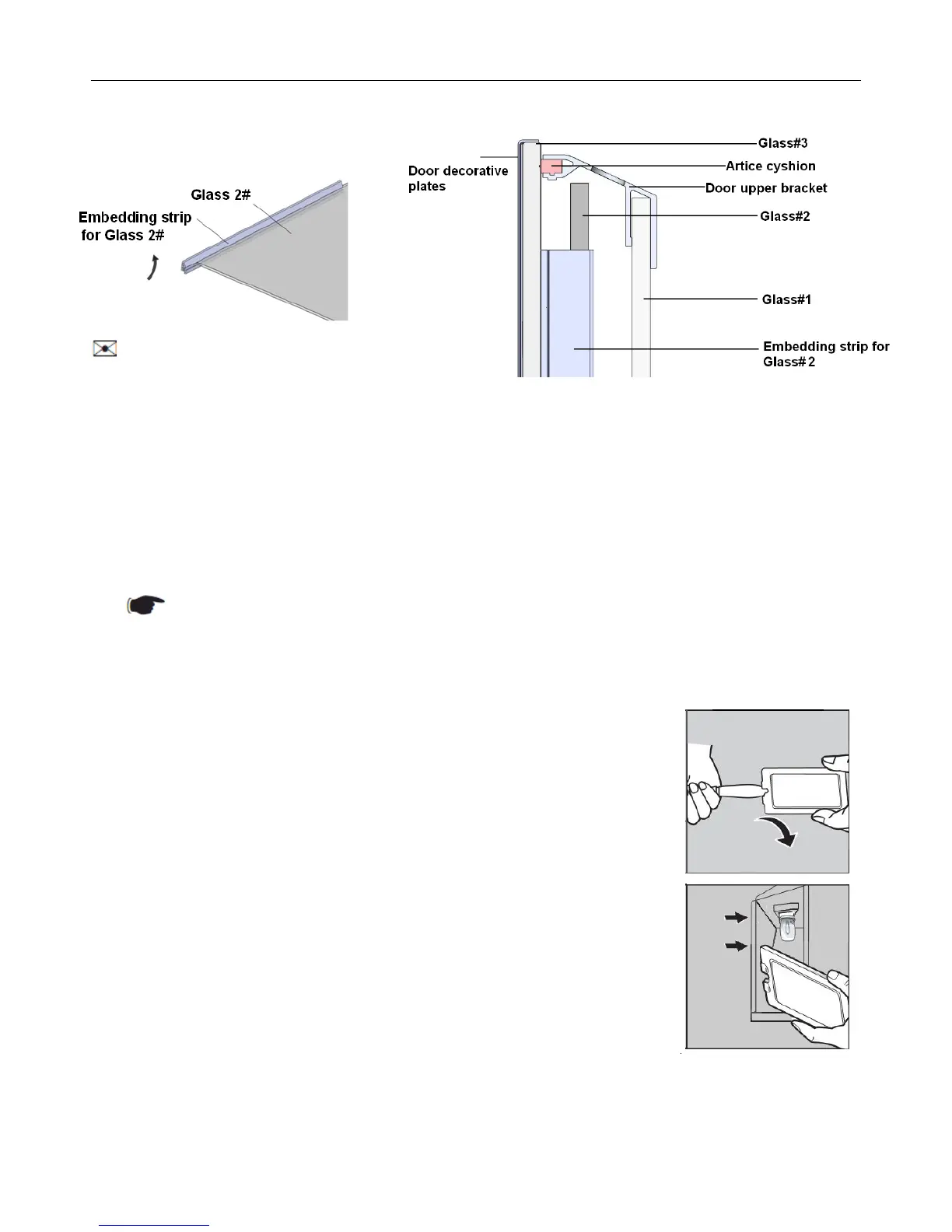 Reassemble the door by following the above procedures in Reverse order.