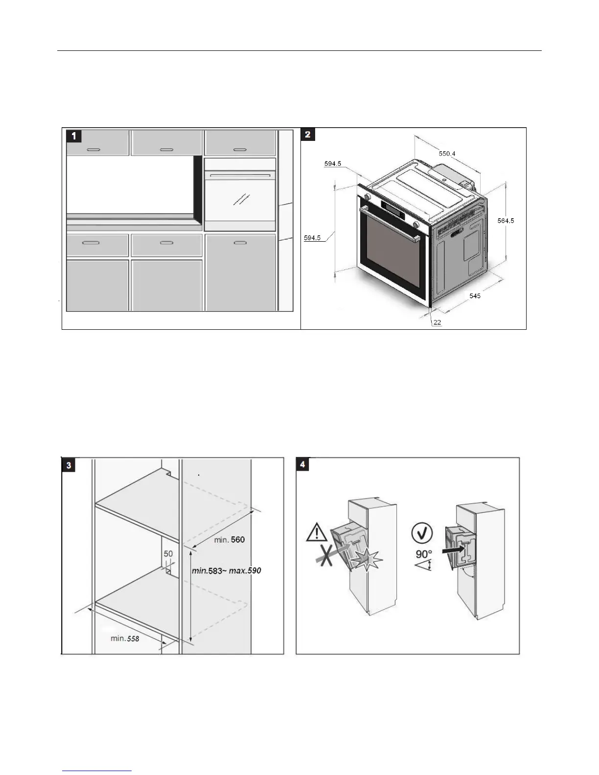 Minimum carcass dimensions are outlined in Figure 3 to house the oven. The front fascia of the oven rests