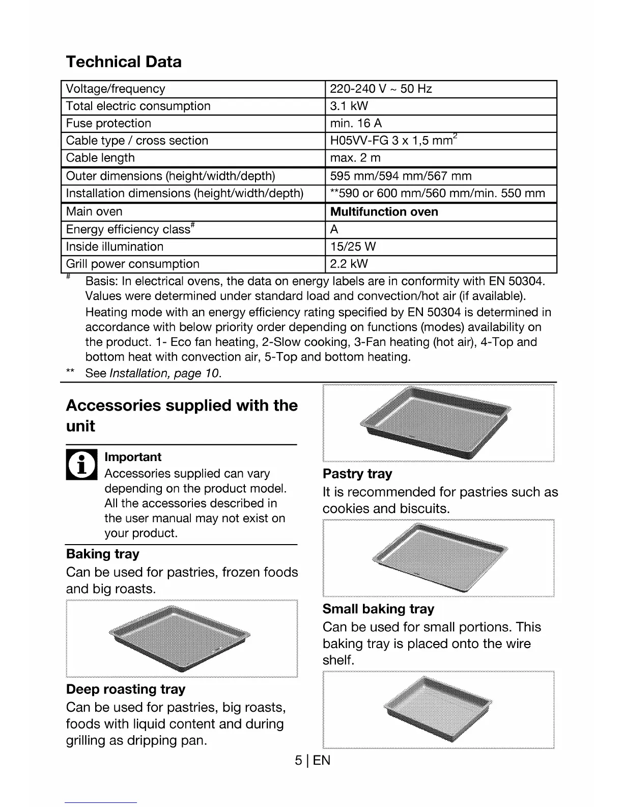 Euromaid PS12 - Technical Data; Accessories Supplied with the Unit
