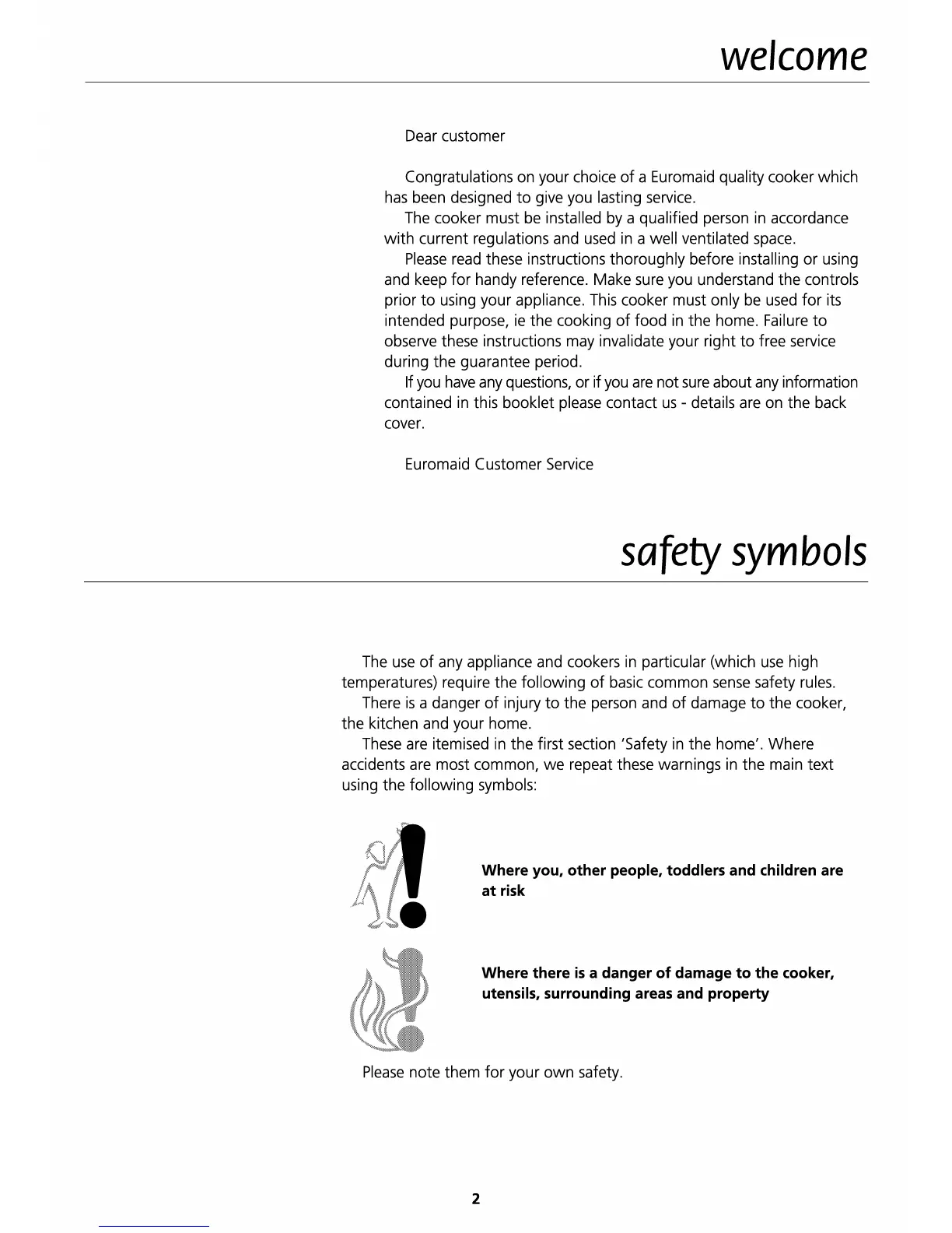 Euromaid SC600 - Safety Symbols and Warnings; Customer Welcome; Symbol Explanations