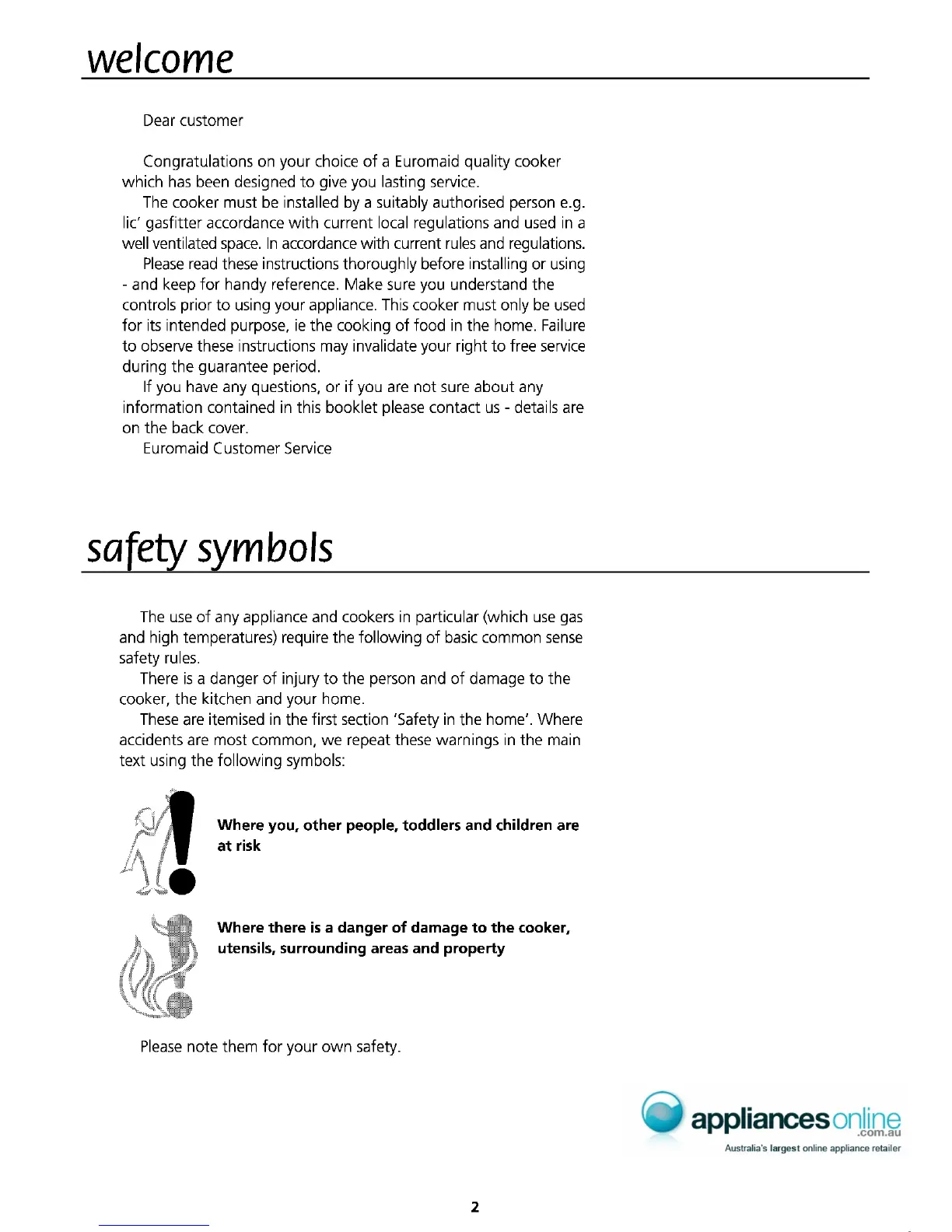 Euromaid SCLPG 7531 - Welcome; Safety Symbols