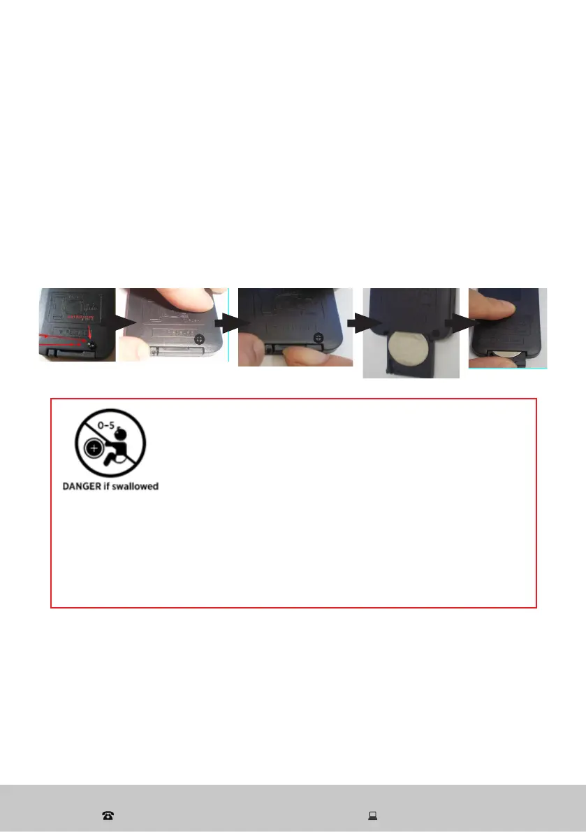 The remote control is powered by a 3V lithium button cell (CR2025). When the