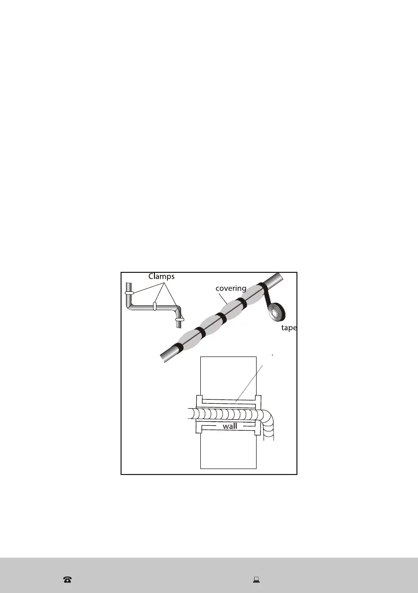 • Fix the piping to the wall (after having coated it with insulating tape) using