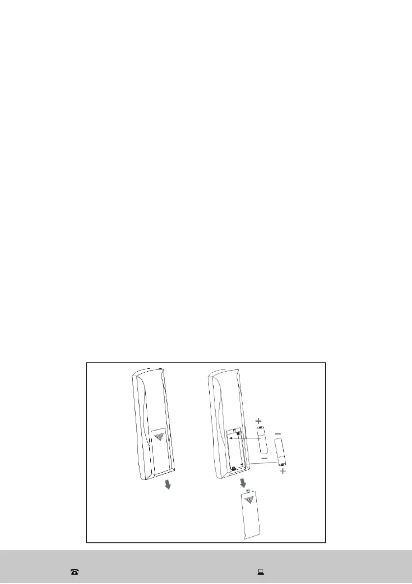 control and insert 2 AAA batteries, making sure to match the polarity