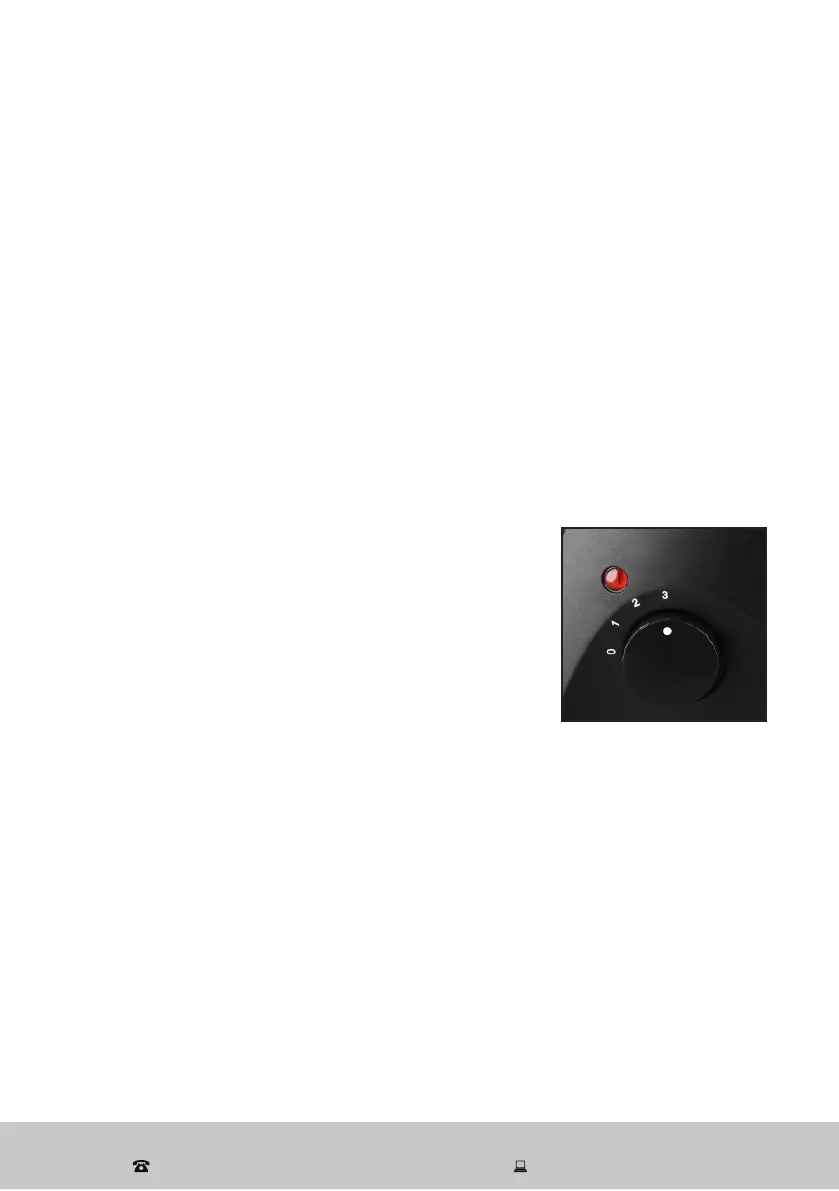 This heater can be operated on three settings. Turn the heat settings knob