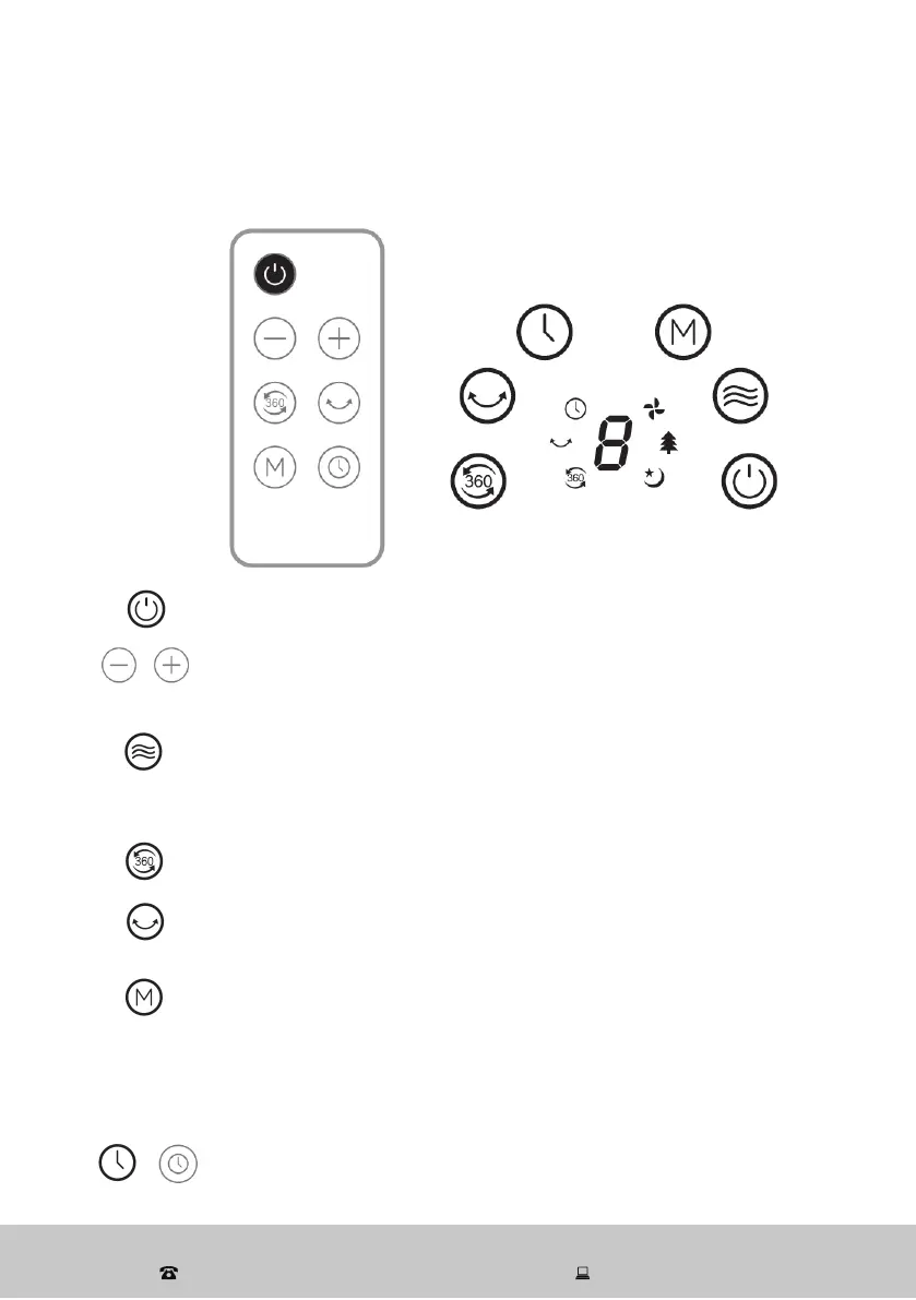 POWER button: Press to switch the fan on or off.