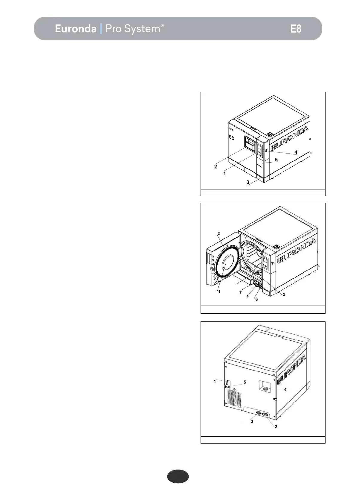 E8: totally automatic steam sterilizer for sterilizing instruments both loose and packed in bags.
