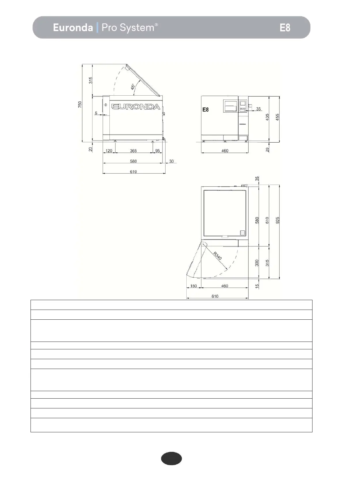 Overall dimensions of the machine with door closed (fig. 5.2-1):
