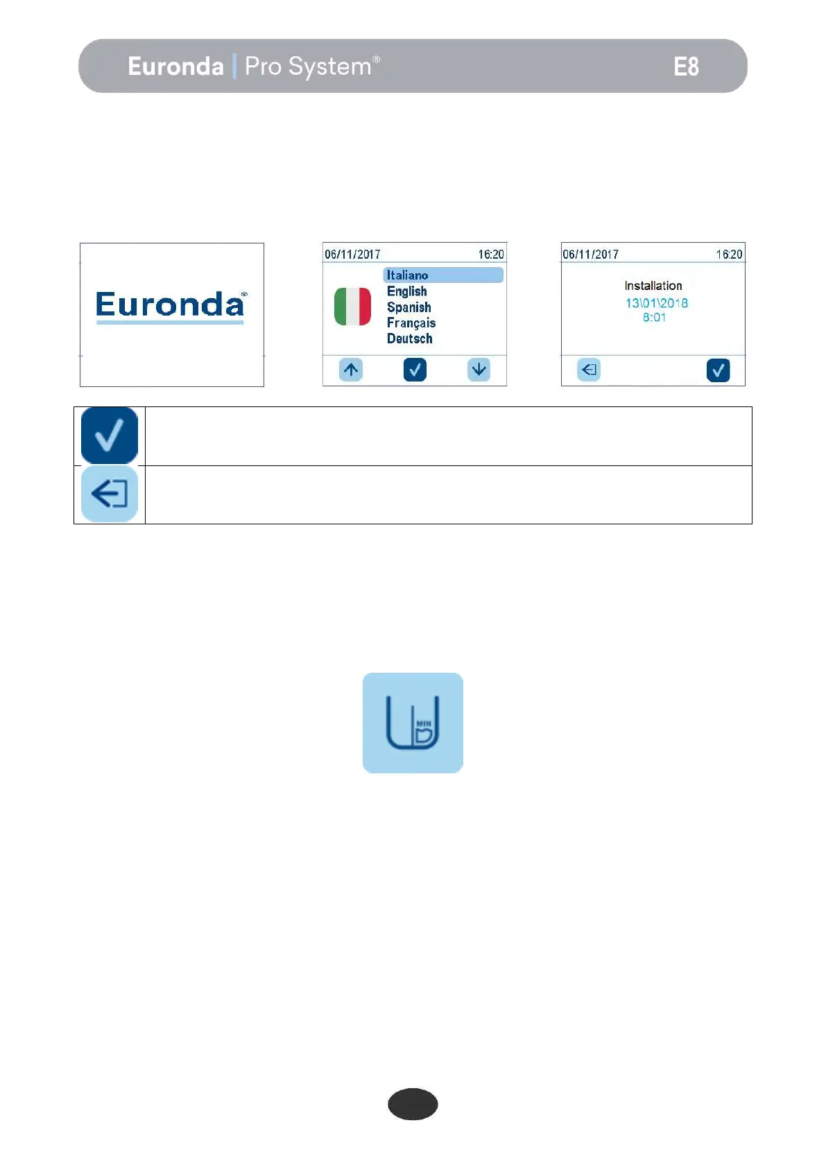 Press this button to confirm the installation of the unit with the date and the time displayed on the