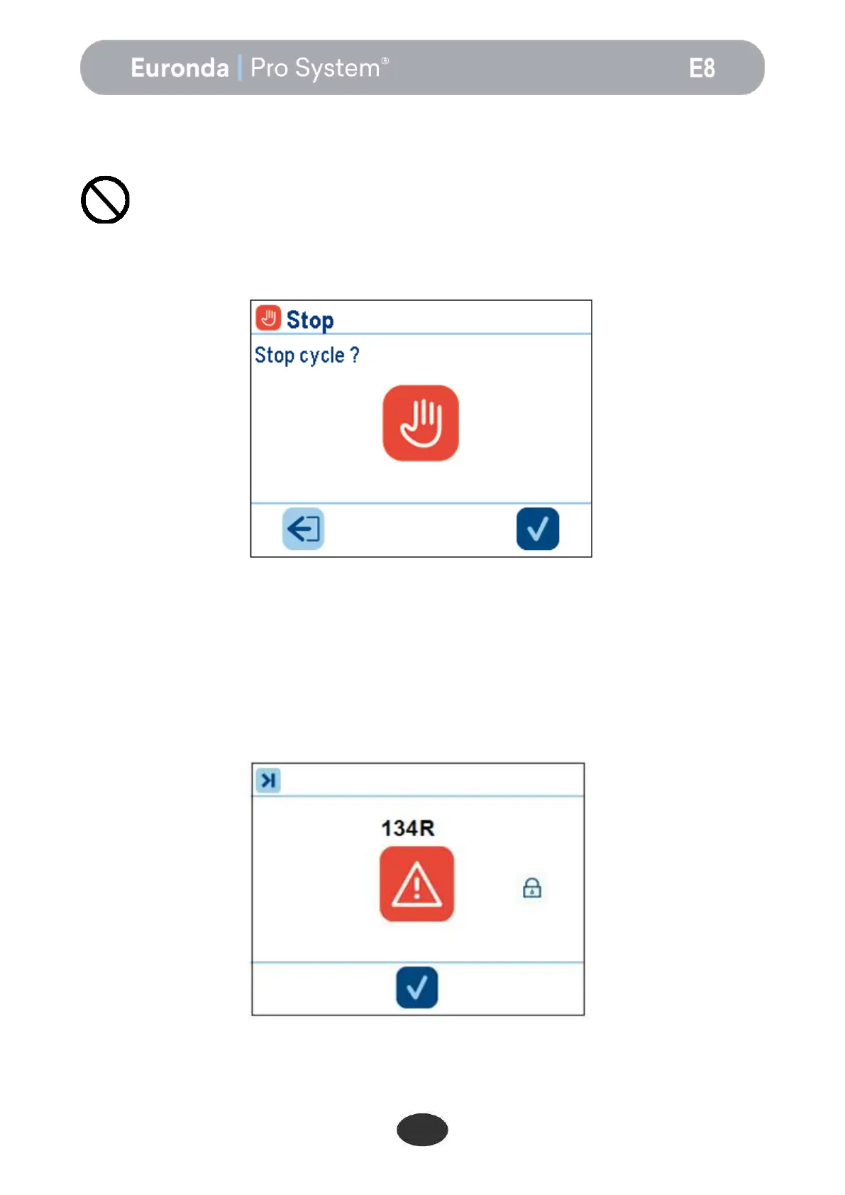 To perform a manual stop, press the red hand button in the Cycle in Progress screen, and then the confirm