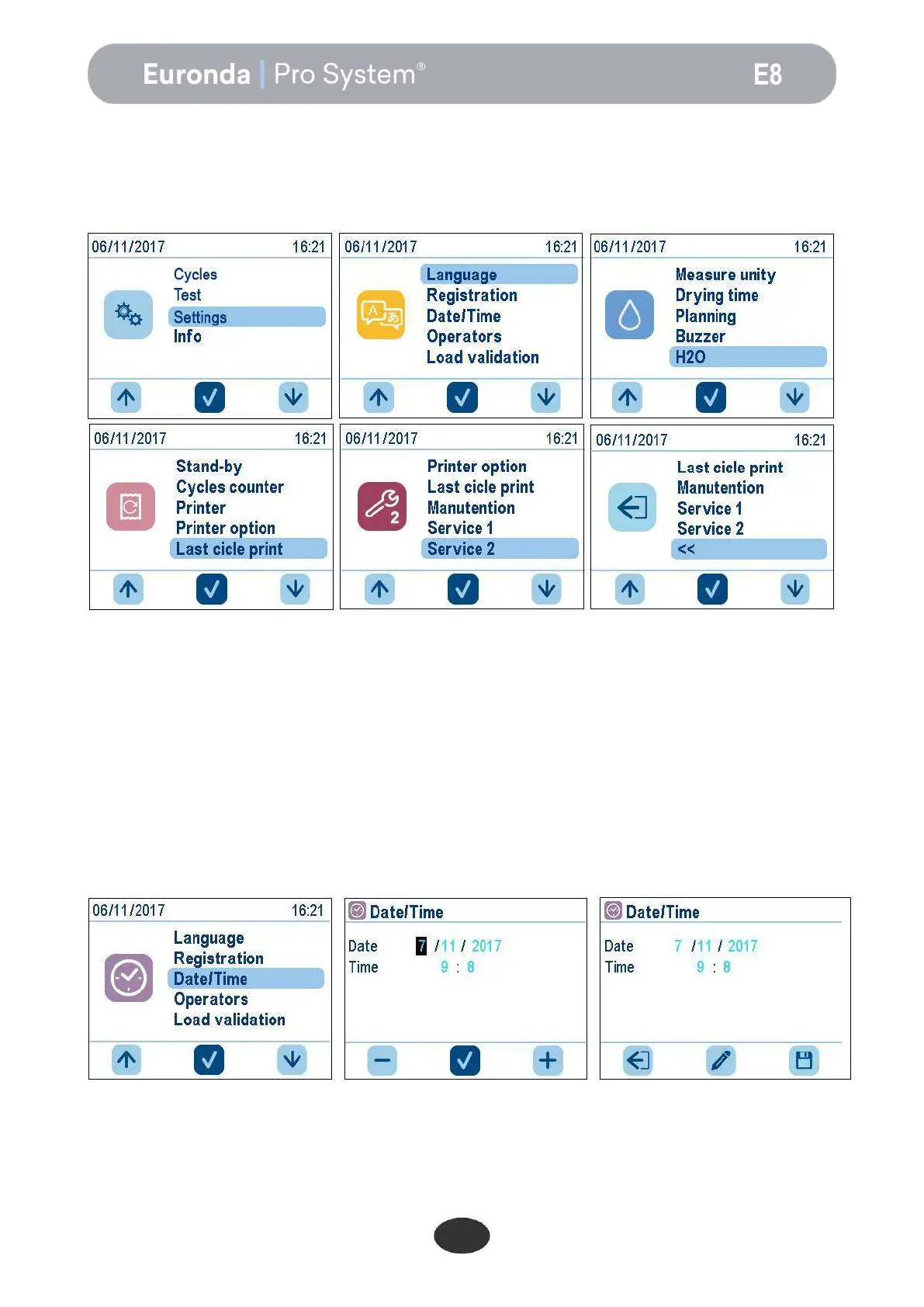To change the date and time of the unit, simply increase or decrease the numbers in the field by pressing the