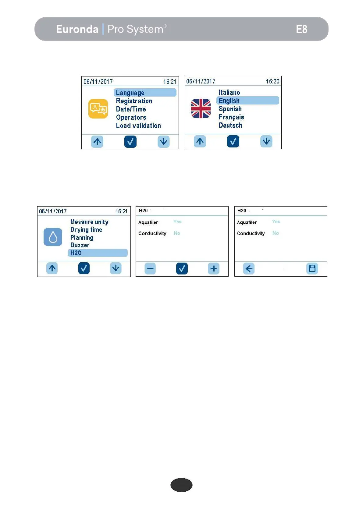To set the language of the steriliser, simply select the appropriate flag and confirm.